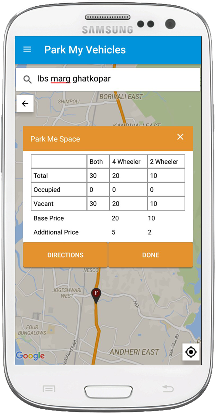 By clicking direction button for selected available parking space, Park My Vehicles will guide to reach that parking space.
